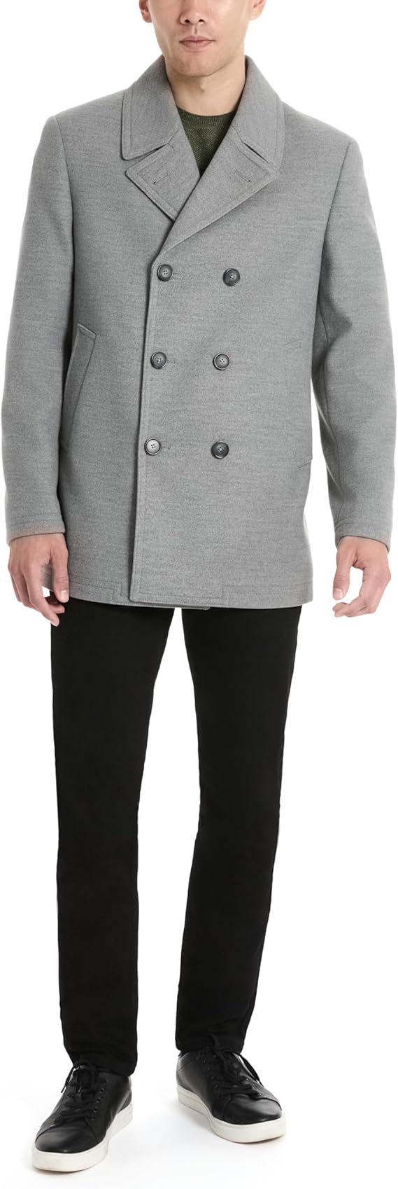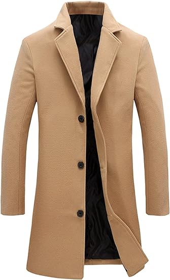 Men's Wool Blend Pea Coat Notched Collar Single Breasted Overcoat Warm Winter Trench Coat