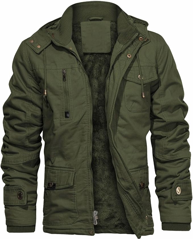Men's Thick Winter Jackets with Hood Fleece Lining Cotton Military Jackets Work Jackets with Cargo Pockets Outwear