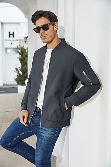 Men's Jacket Lightweight Bomber Jacket Casual Windbreaker Jackets Windproof Zip Up Coats with 5 Pockets