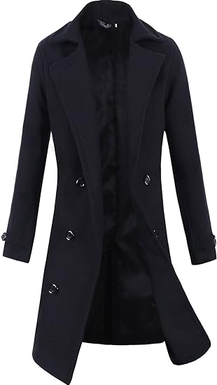 Men's Pea Coat Double Breasted Overcoat Lapel Coat Classic Long Trench Coat