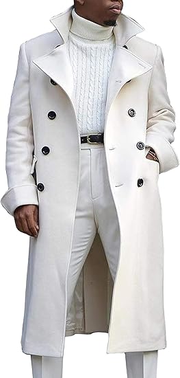Men Trench Coat Winter Long Jacket Double Breasted Overcoat