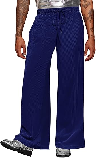 Men's Wide Leg Pants Casual Lounge Ribbed Velvet Trousers Disco 70s Nightclub Pants