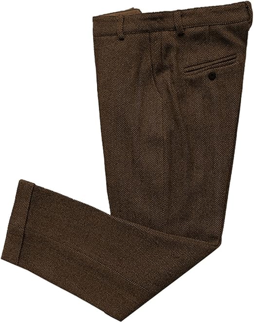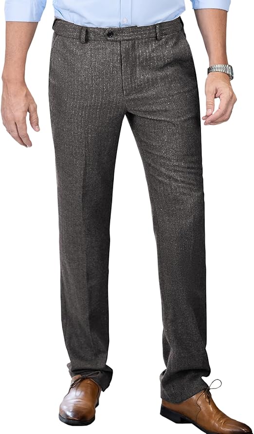 Mens Vintage Tweed Dress Pants Slacks Trousers Regular Fit Suit Pants for Men
