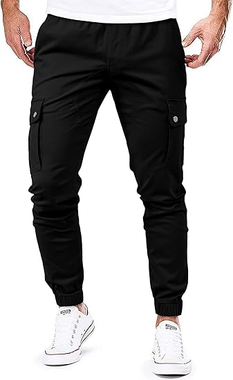 Men's Casual Cargo Pants Cotton Tapered Stretch Twill Drawstring Trousers with Multiple Pockets