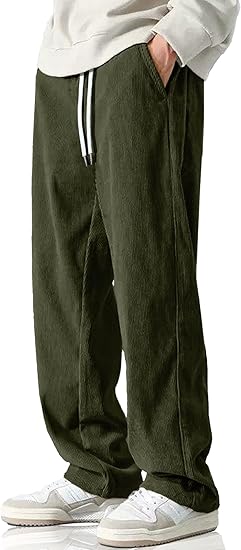Men's Casual Corduroy Pants Drawstring Elastic Waist Fashion Loose Pants for Men