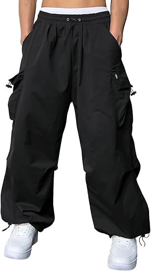 Parachute Cargo Pants for Men Loose Fit Baggy Sweatpants Casual Pant with Pocket Outdoor Drawstring Trousers